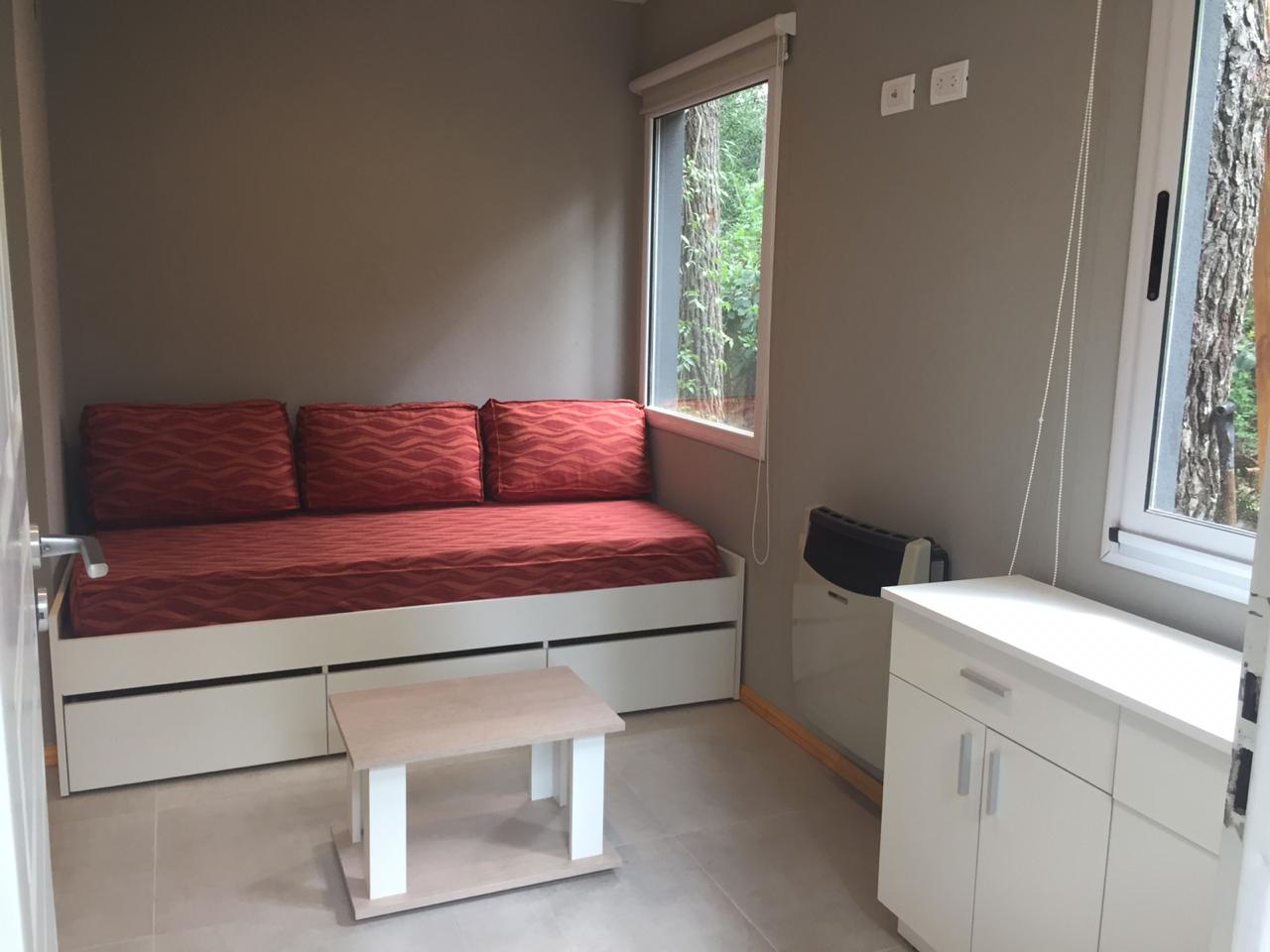Posee cocina y baño completos, cama sommier, Smart TV, aire acondicionado frío/calor, comedor, living separado con sofa cama TV LED, estufa de tiro balanceado.